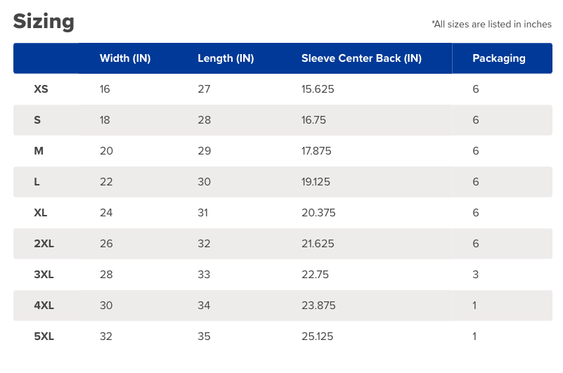 • Sizing Details